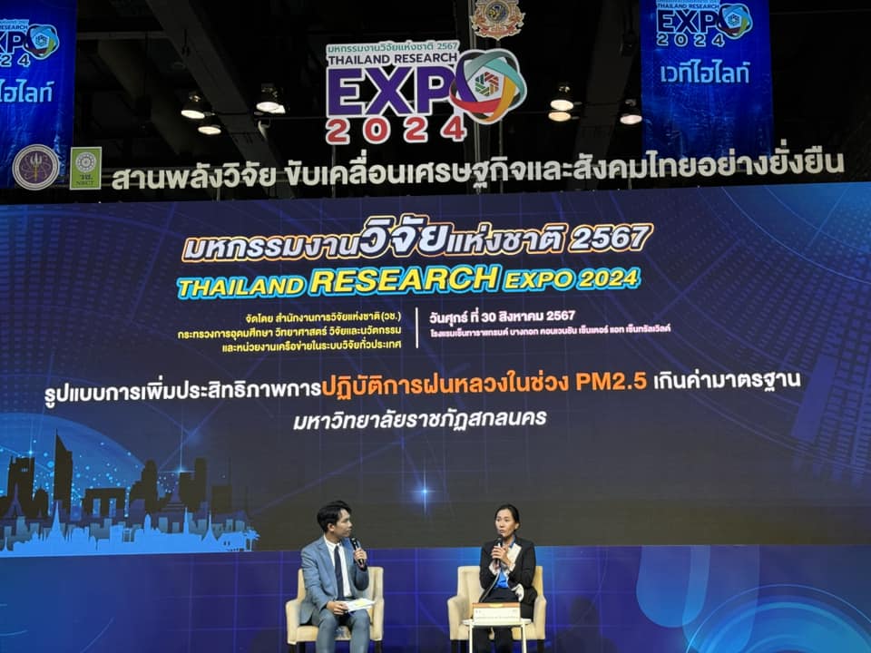 วันที่ 30 สิงหาคม 2567 รศ.ดร.วิลาวรรณ์ คำหาญ อาจารย์ประจำคณะวิทยาศาสตร์และเทคโนโลยี มหาวิทยาลัยราชภัฏสกลนคร ได้รับเกียรติร่วมเป็นส่วนหนึ่งของเวที Highlight Stage ในงาน “มหกรรมงานวิจัยแห่งชาติ 2567 (Thailand Research Expo 2024)” ซึ่งจัดขึ้นที่โรงแรมเซ็นทาราแกรนด์และบางกอกคอนเวนชันเซ็นเตอร์ ชั้น 22 เซ็นทรัลเวิลด์ กรุงเทพมหานคร
